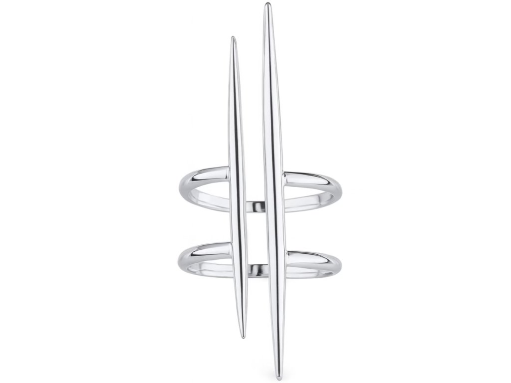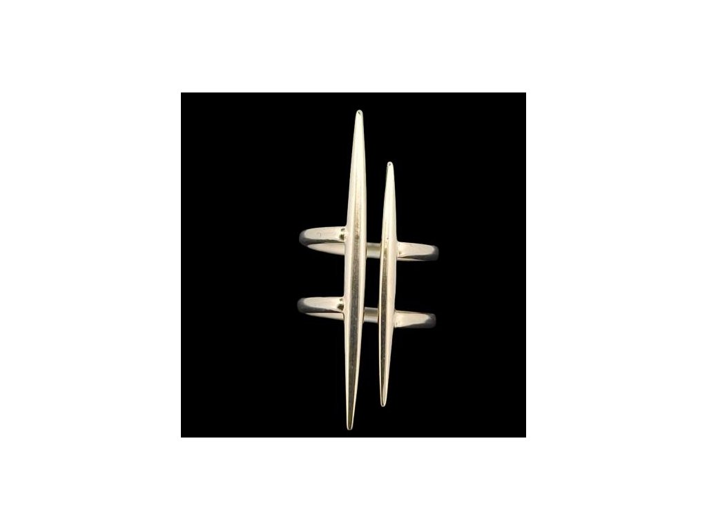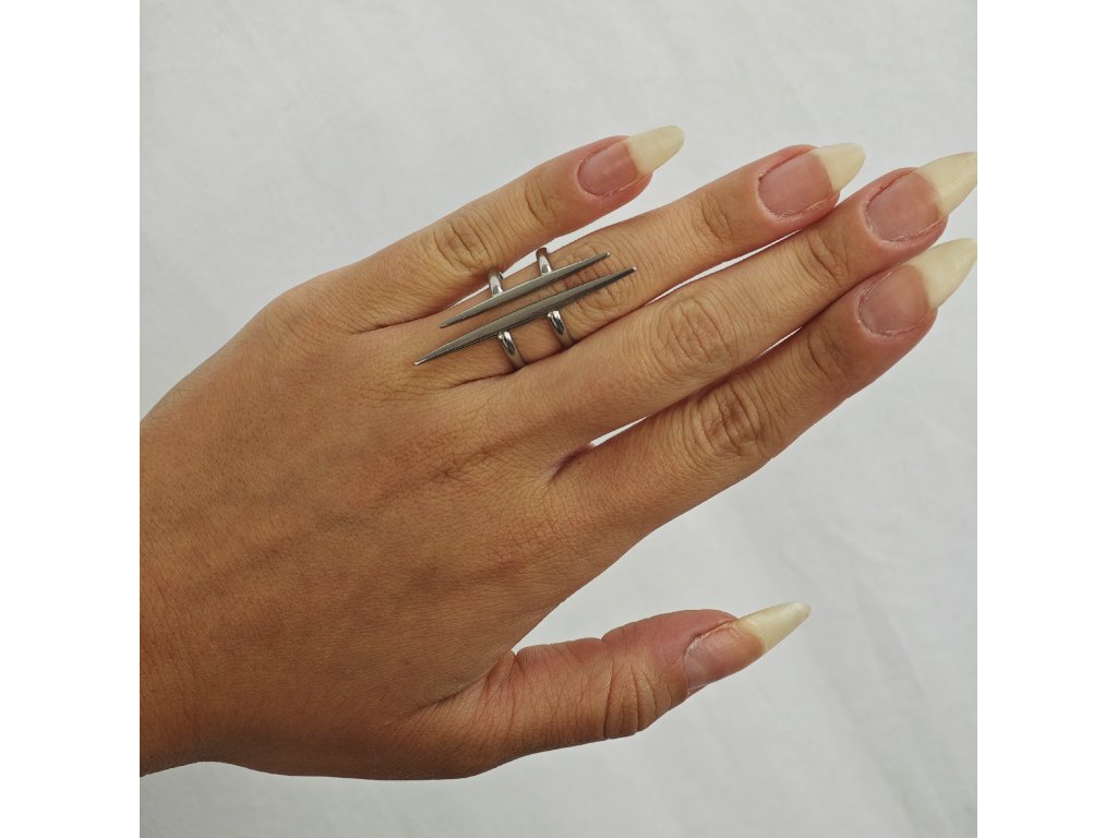 Odvážny dizajn pre odvážnu osobnosť – prsteň Vectora je šperkom, ktorý si určite nikto nepomýli. Dve vertikálne ihlovité línie spojené horizontálnymi pásmi vytvárajú dojem architektonickej rovnováhy a minimalistickej elegancie.