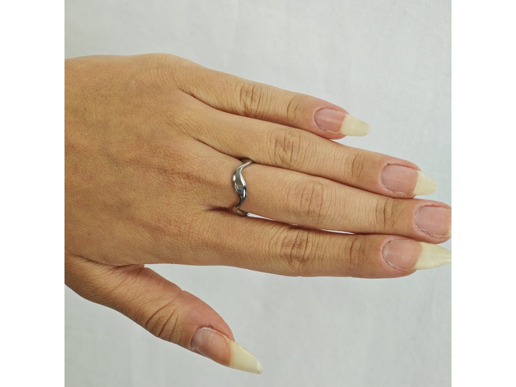 Minimalistický dámsky prsteň z chirurgickej ocele s jemným vlnovým dizajnom pre moderný a elegantný vzhľad.