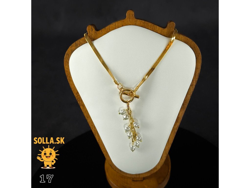 náhrdelník s jemnou zlatou retiazkou a príveskom zdobeným perlami,