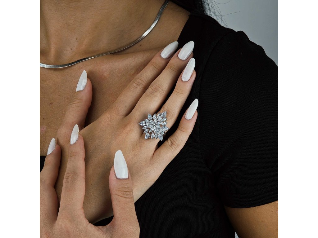 Diamond Blossom je luxusný prsteň zo striebra 925 s brilantnými zirkónmi. Elegantný dizajn v tvare kvetu symbolizuje večnú krásu a noblesu.