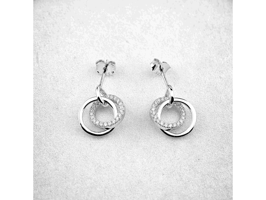 Náušnice sú vyrobené z rýdzeho striebra 925 a nesú lesk precízne brúsených švajčiarskych zirkónov, ktoré odrážajú každý lúč svetla ako zrkadlo neba. Symbolika dvoch kruhov predstavuje partnerskú rovnováhu, večnú dualitu v harmónii a nadčasovú eleganciu.