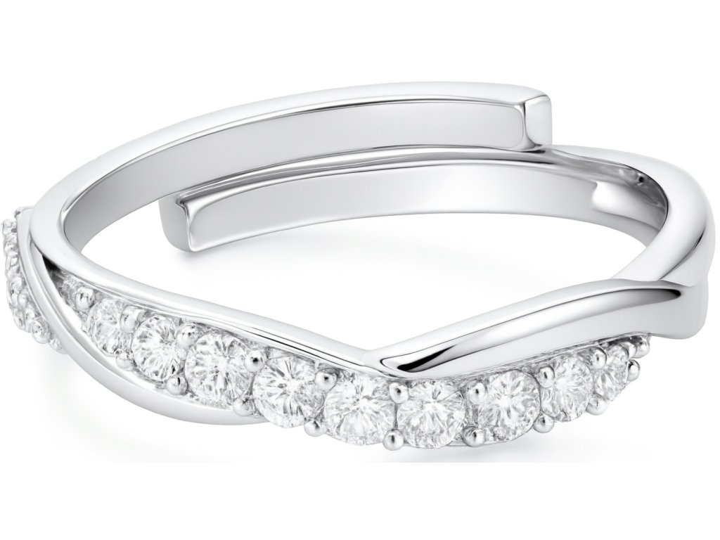Elegance je nastaviteľný prsteň zo striebra 925 s rhódiovou úpravou a švajčiarskymi zirkónmi. Jemne zvlnený dizajn symbolizuje ladnosť a harmóniu.