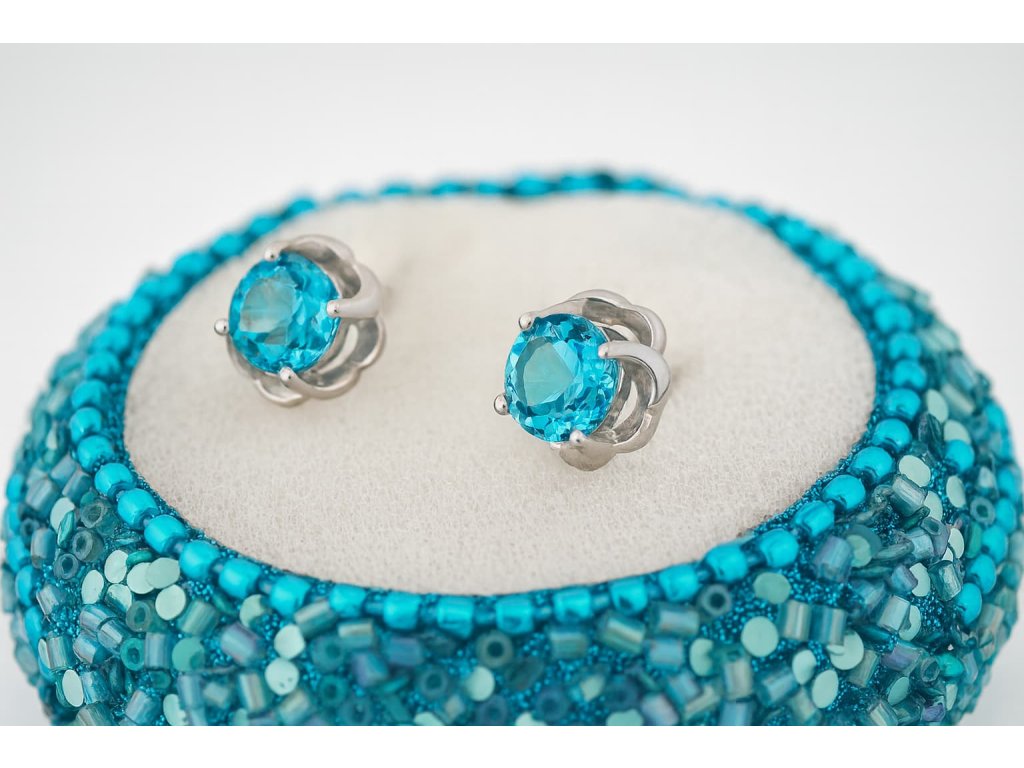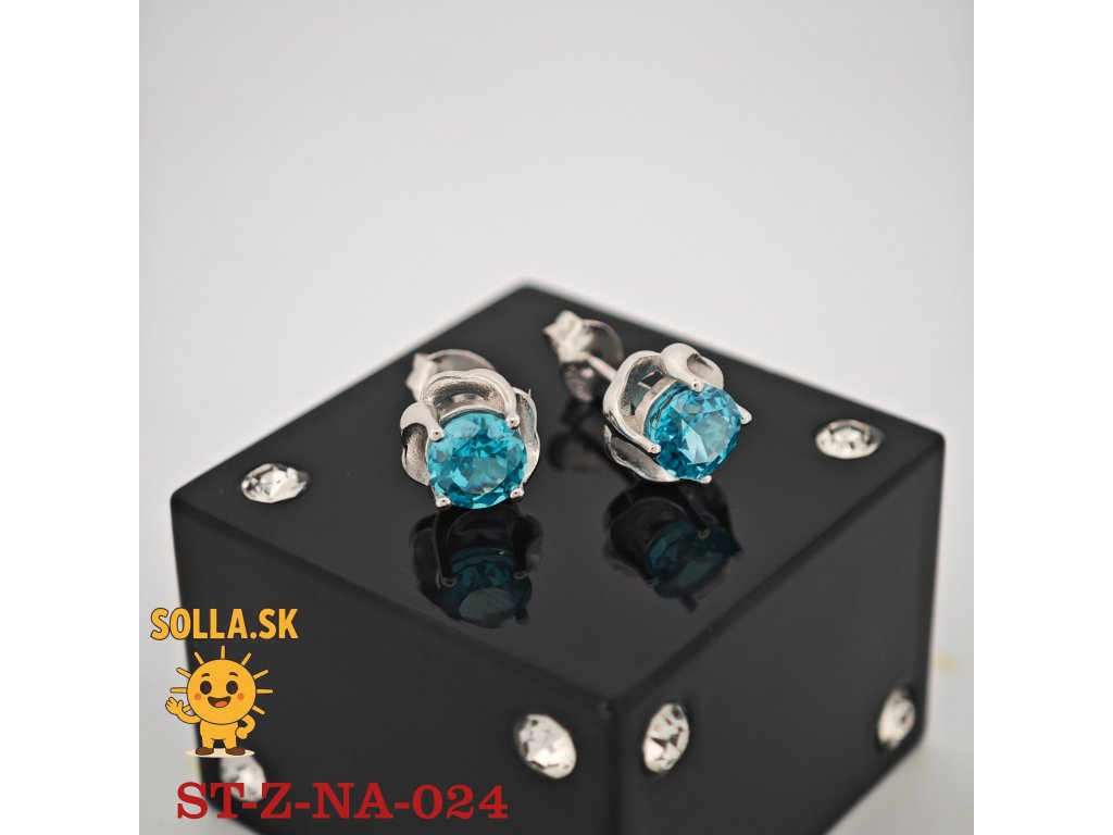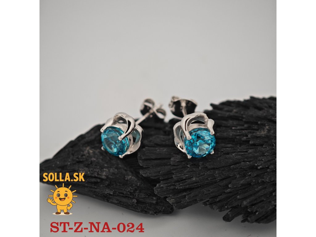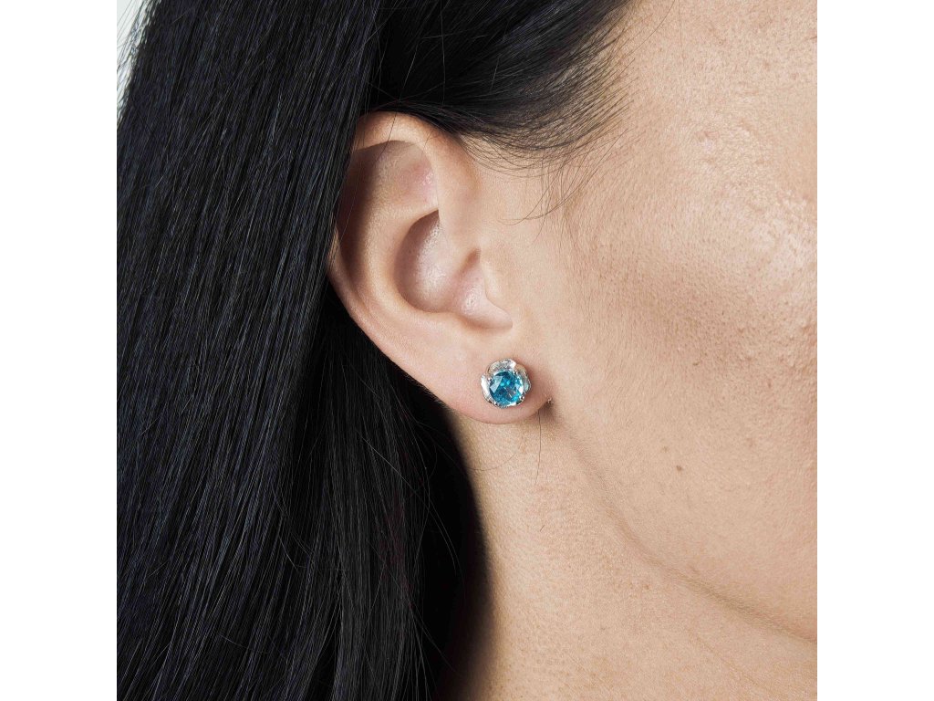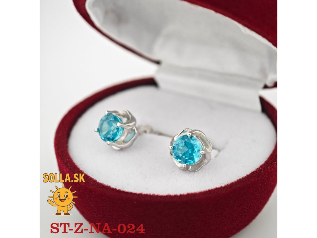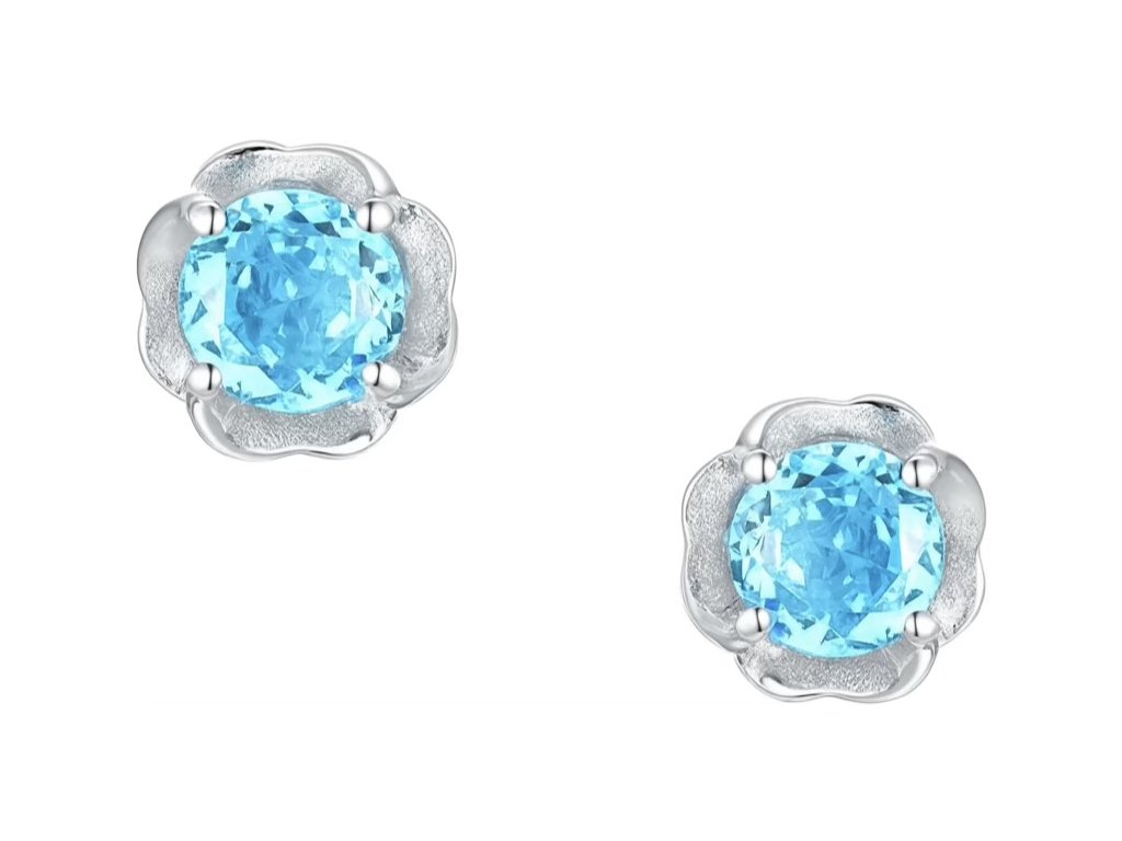 Floralis Caeli – strieborné náušnice 925 s rhódiovou úpravou a modrými zirkónmi v tvare rozkvitnutého kvetu. Spojenie elegancie a jemnej ženskosti.