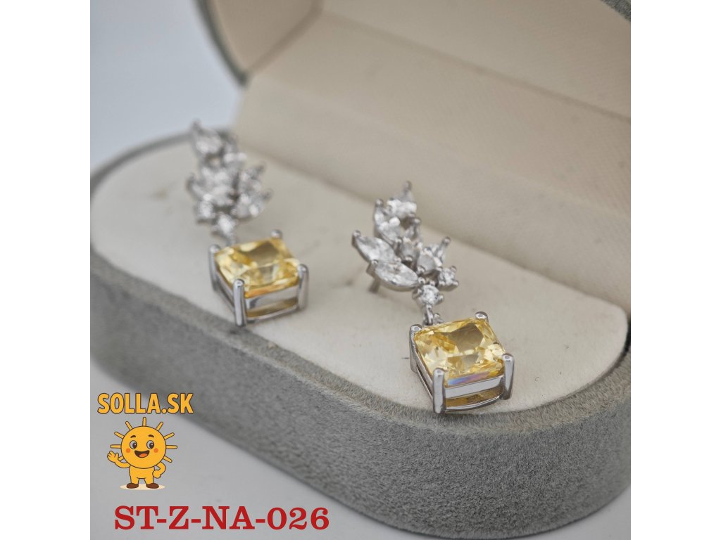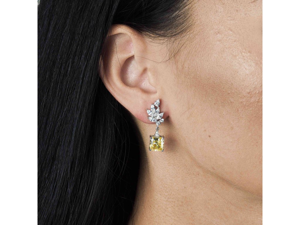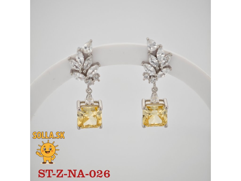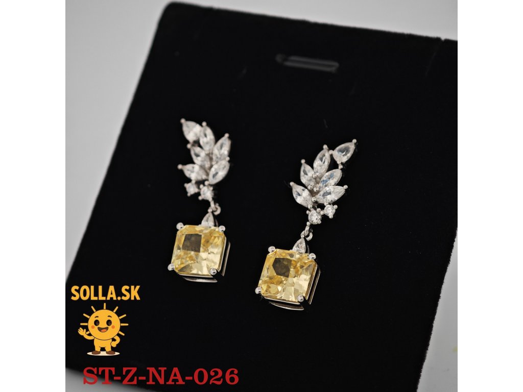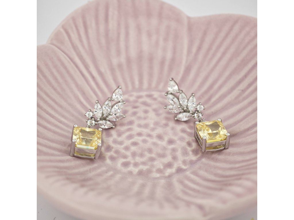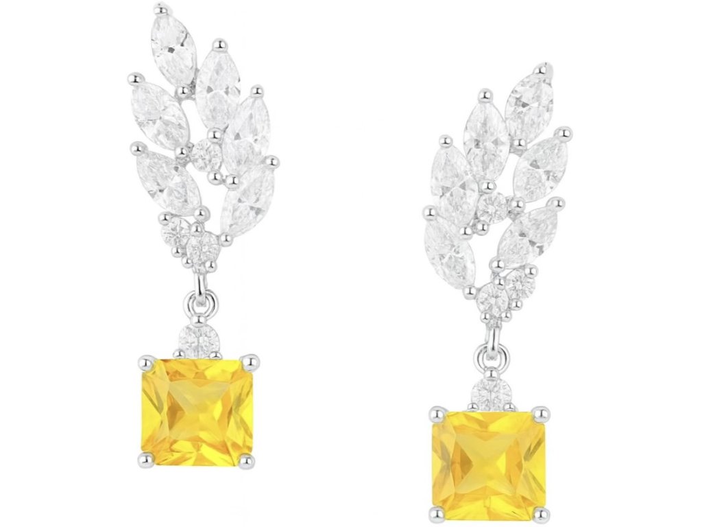 Golden Laurel sú elegantné náušnice zo striebra 925 s rhódiovou úpravou, zdobené žltým kameňom a zirkónmi v tvare lístkov. Symbol víťazstva a ženskej elegancie.