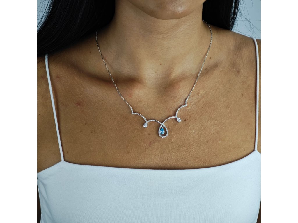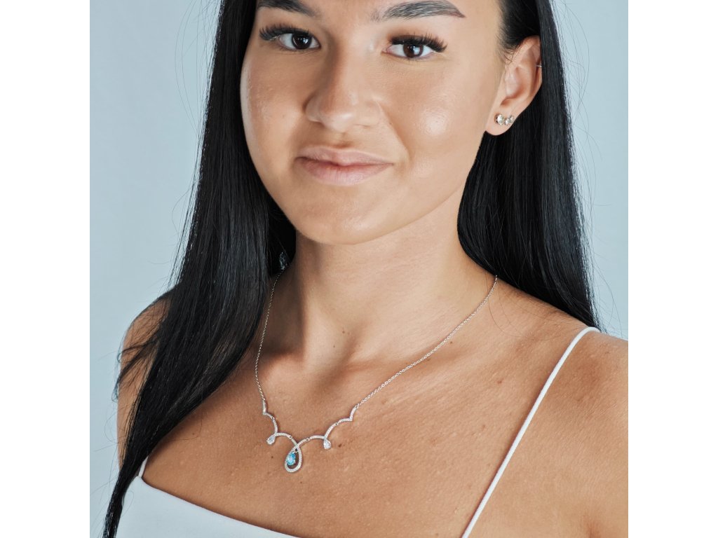 Lacrima Oceani je strieborný náhrdelník 925 s tyrkysovou kvapkou obklopenou zirkónmi. Elegantný a ženský, inšpirovaný krásou oceánu.
