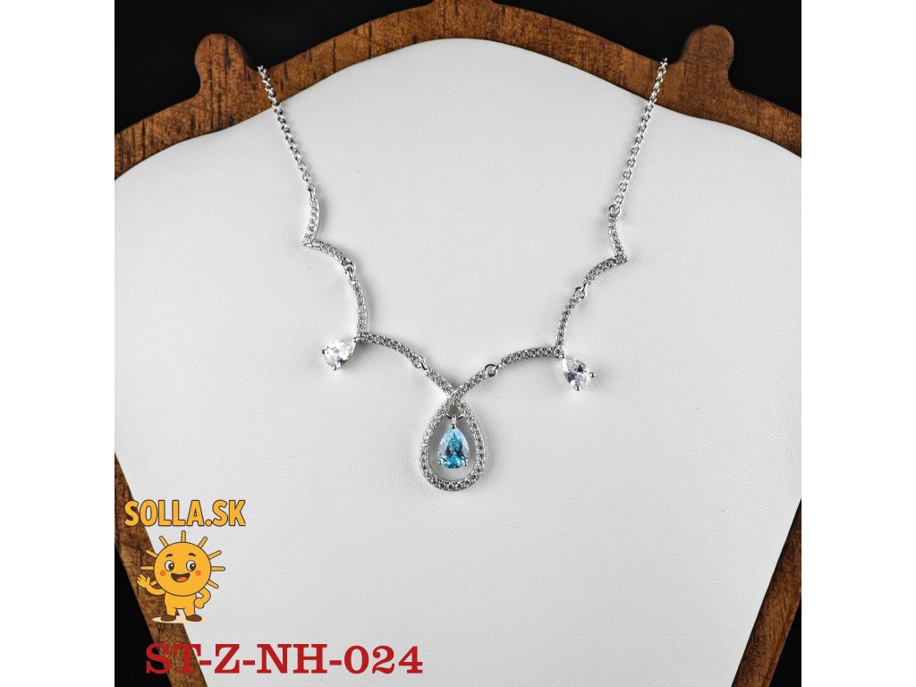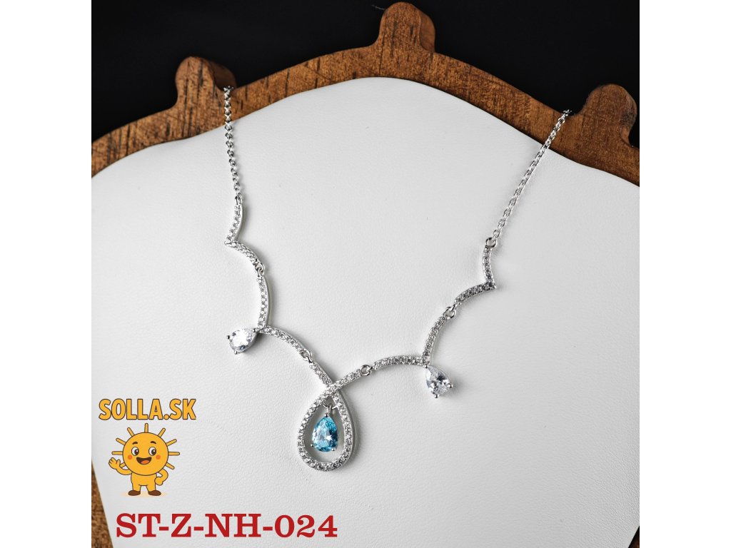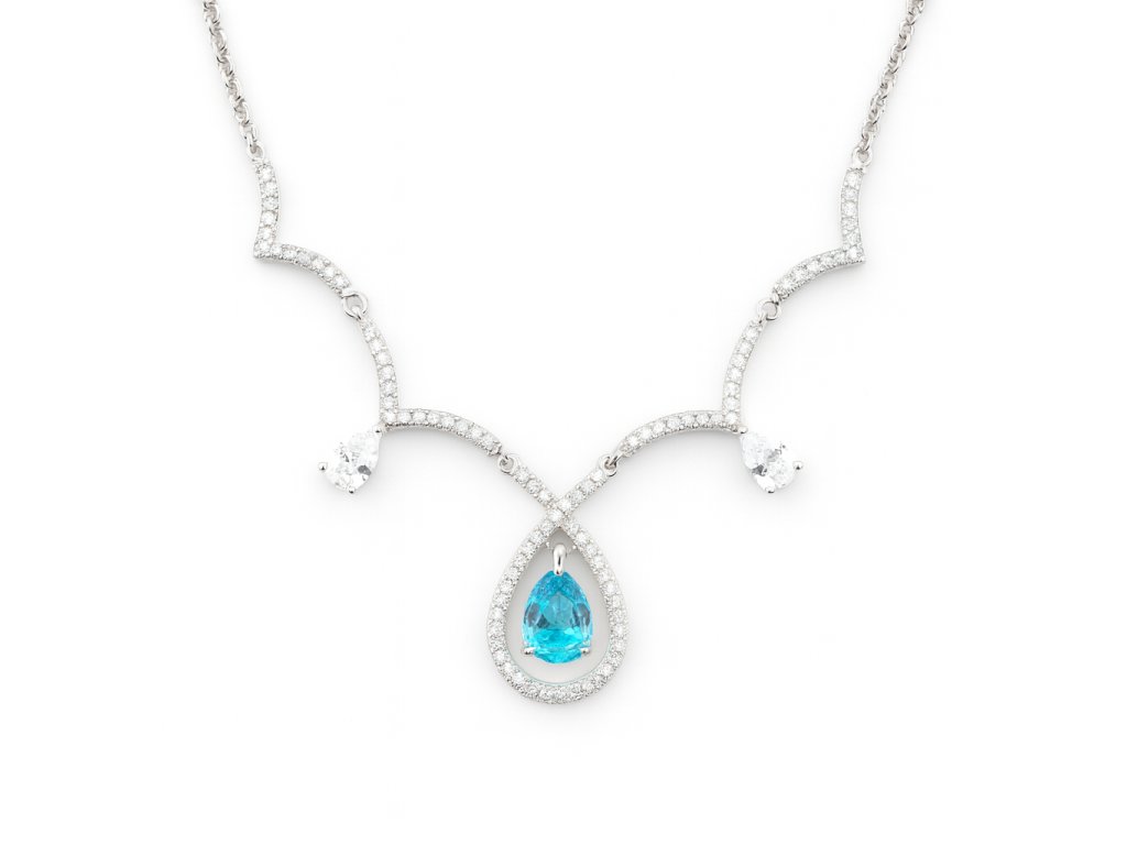 Jeho dominantou je výrazný tyrkysovomodrý zirkón v tvare kvapky – slzy, zasadený do rámu z drobných čírych zirkónov, ktoré umocňujú jeho žiarivosť.