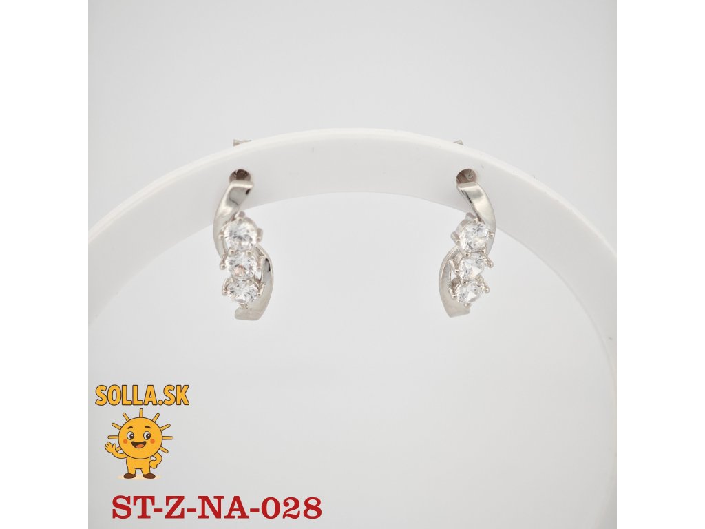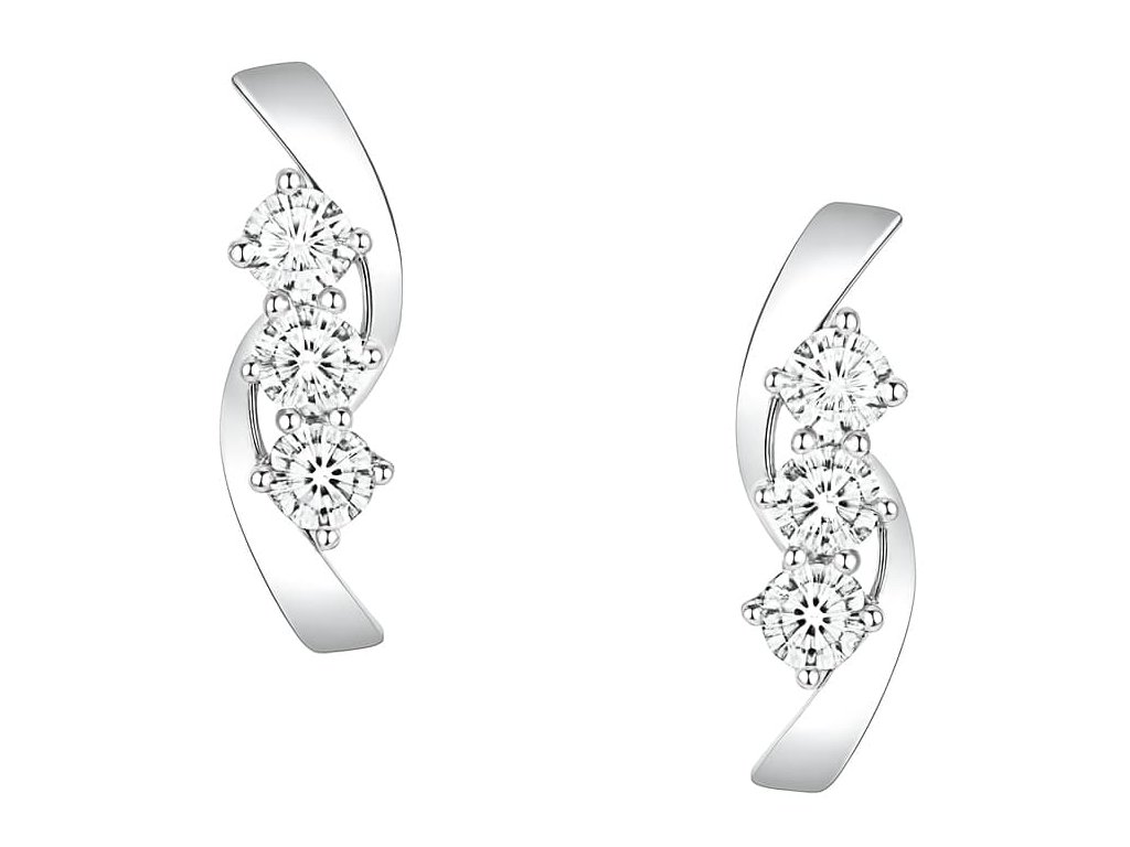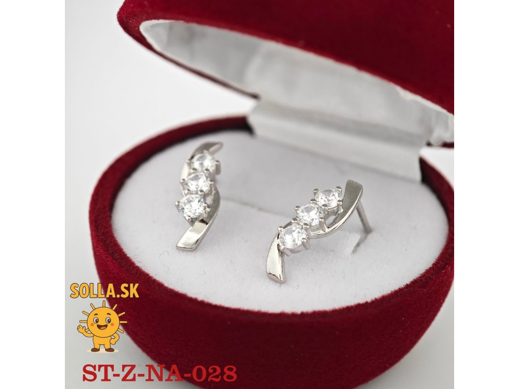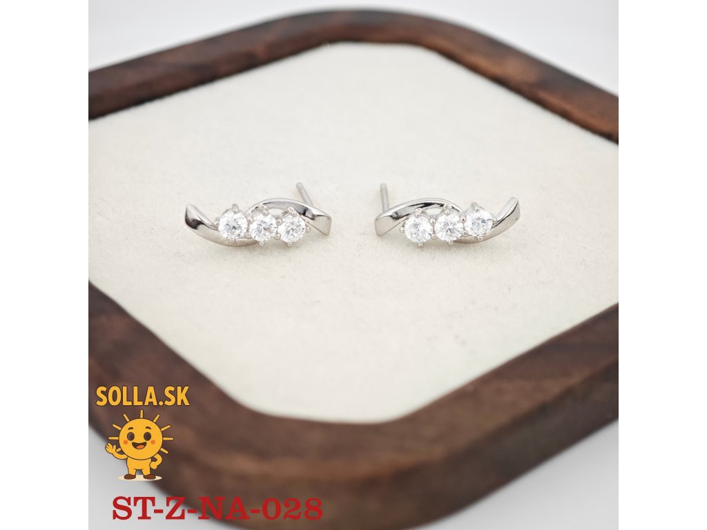 Strieborné náušnice Lunaris Arc zo striebra 925 s rhódiovou úpravou a trojicou zirkónov, elegantne prepletených v oblúku mesačného svetla.