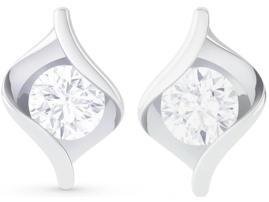 Elegantný, mierne vlnitý tvar obopína centrálny kameň s jemnosťou a noblesou, čím zvýrazňuje jeho čistotu a iskru. Náušnice sú navrhnuté tak, aby dokonale ladili so slávnostným outfitom, no zároveň dodali výnimočný pôvab aj každodennému štýlu.