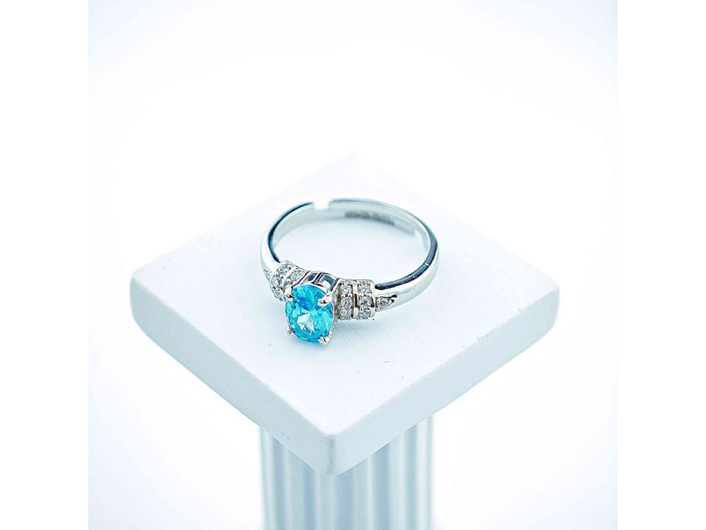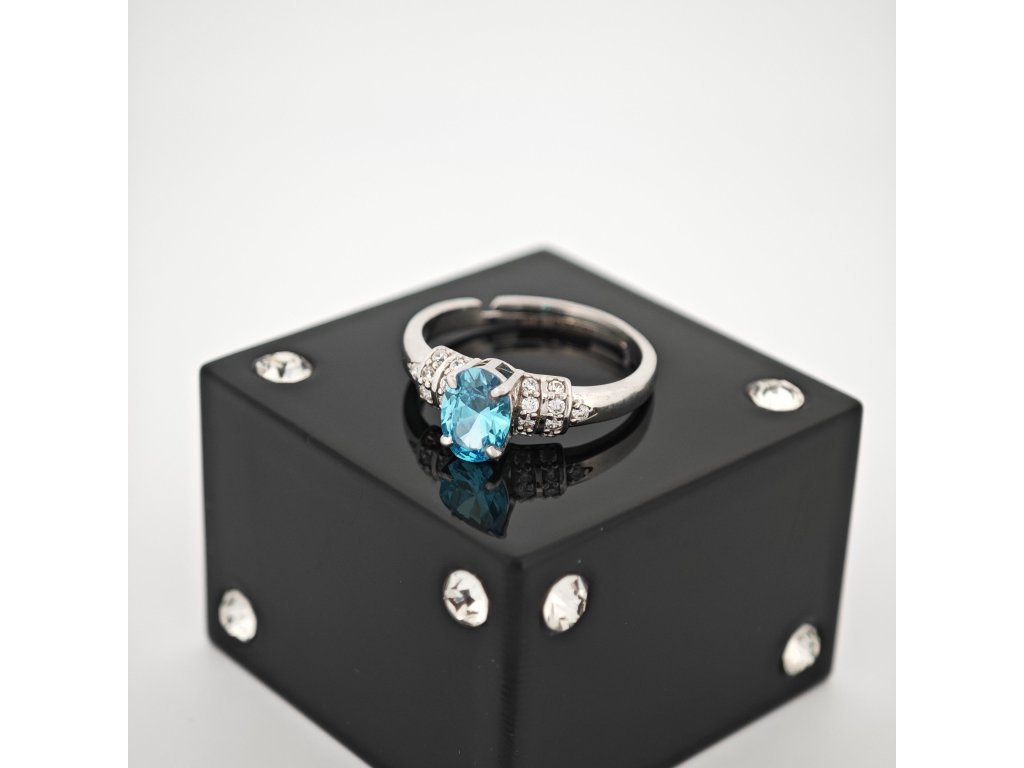 Vďaka nastaviteľnej veľkosti sa prsteň pohodlne prispôsobí každej ruke. Jeho žiarivý modrý kameň evokuje hĺbku oceánu a pokoj jasnej oblohy, v ktorej sa odráža nekonečné svetlo.