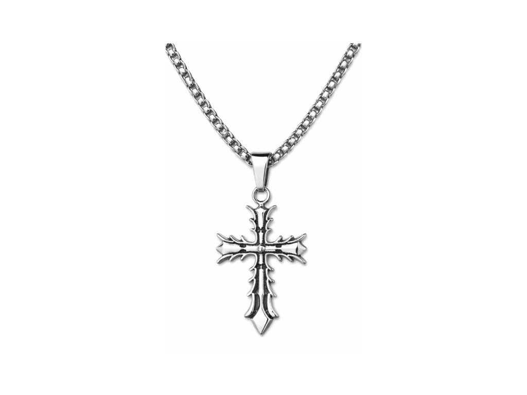 Štýlový oceľový náhrdelník s krížom v gotickom dizajne. Symbol odvahy, viery a elegancie pre mužov.