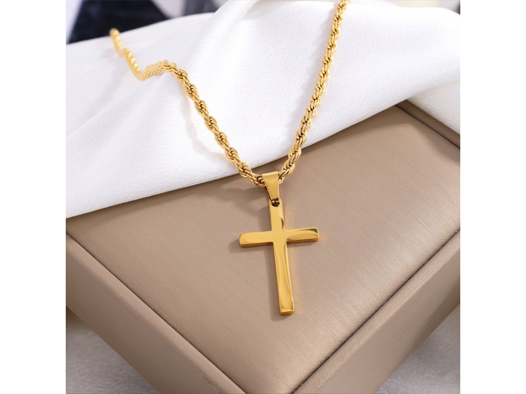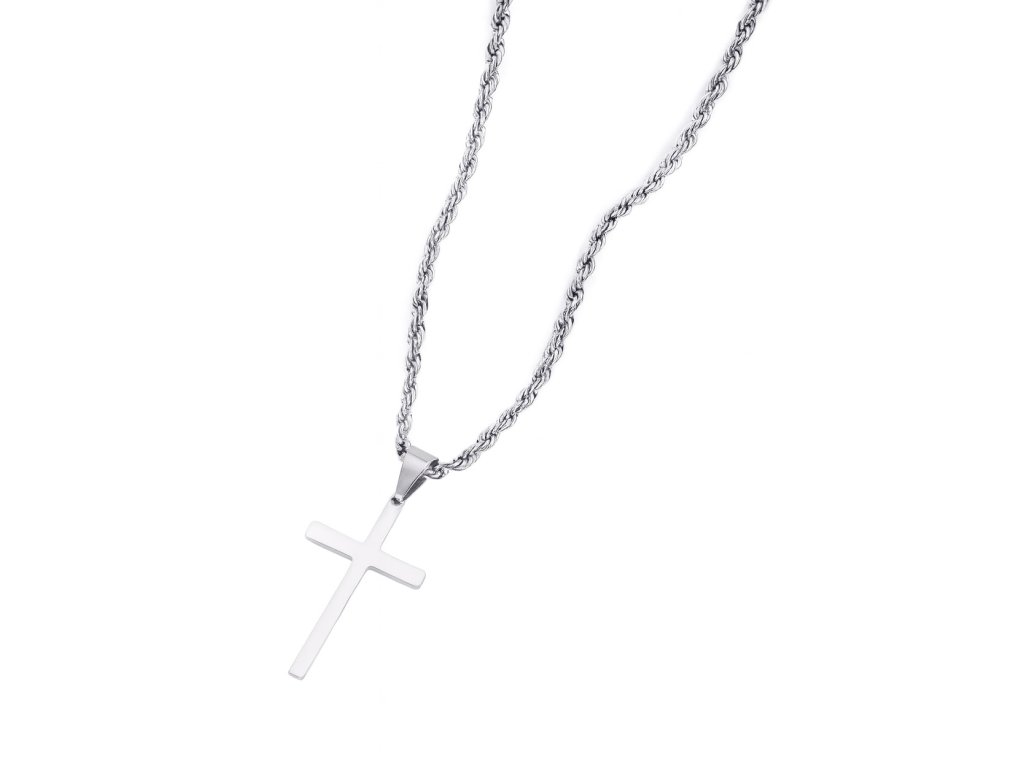 Elegantný oceľový náhrdelník s krížom – nadčasový symbol viery a sily v modernom prevedení.
