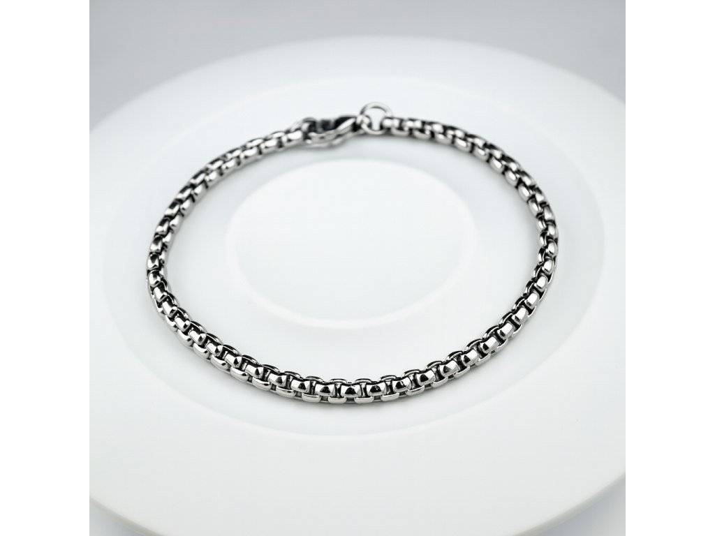 Argent Nexus je pánsky náramok vyrobený z kvalitnej chirurgickej ocele so strieborným kovovým povrchom. Tvorí ho sústava presne prepojených článkov, ktoré vytvárajú jednotný a čistý vizuálny vzhľad vhodný na každodenné nosenie aj formálnejšie príležitosti.