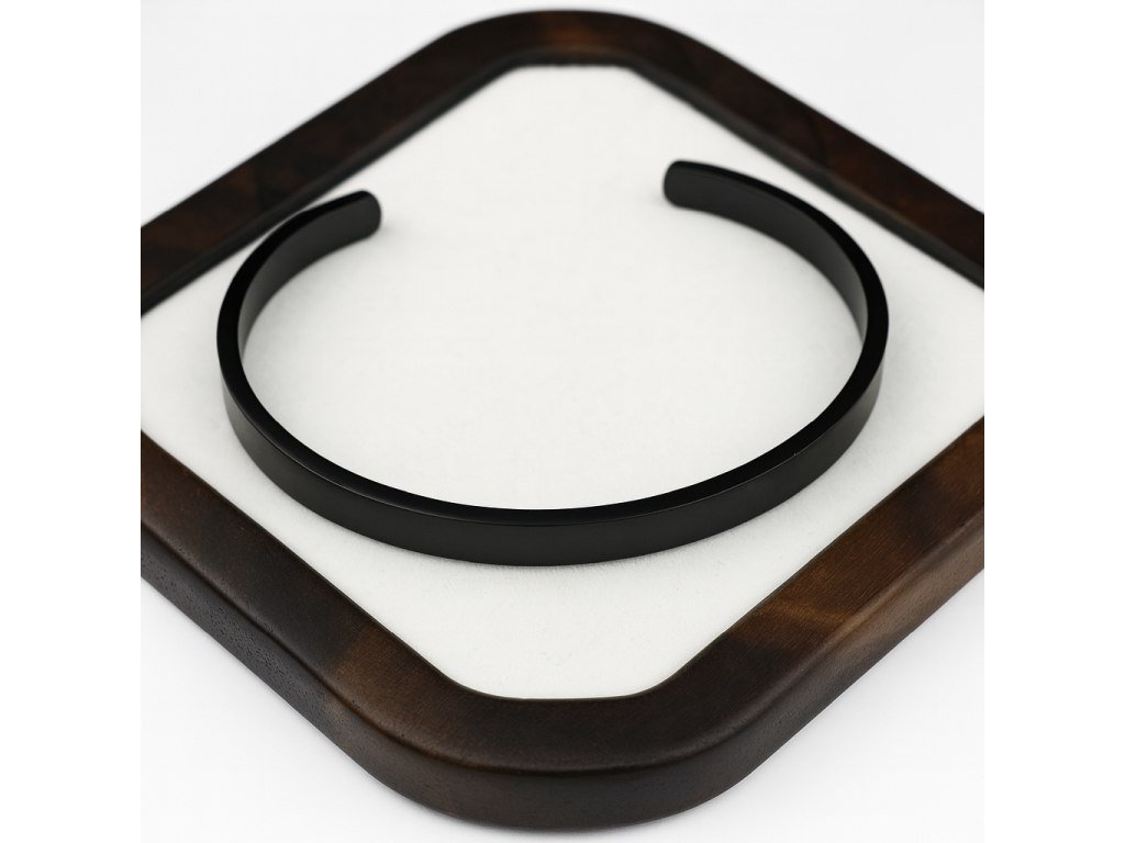Noir Arc je pánsky náramok vyrobený z čiernej chirurgickej ocele s matnou povrchovou úpravou. Je navrhnutý v jednoduchom otvorenom tvare, ktorý umožňuje pohodlné nasadzovanie a mierne prispôsobenie zápästiu.