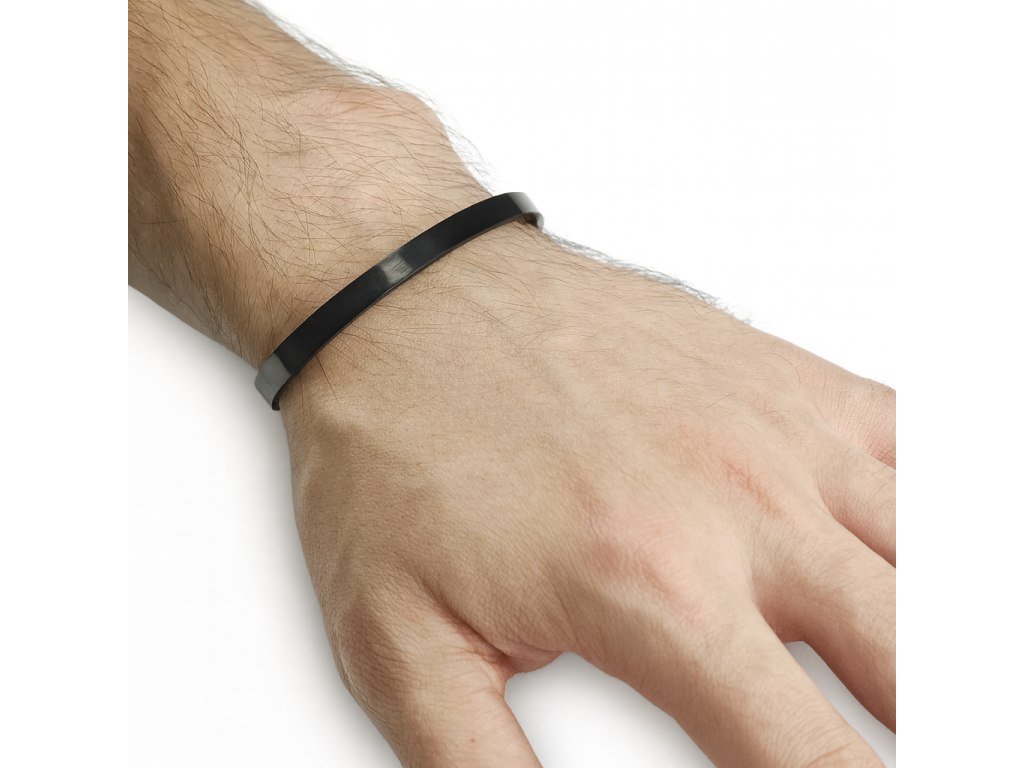 Pánsky minimalistický náramok z čiernej chirurgickej ocele v modernom otvorenom prevedení.