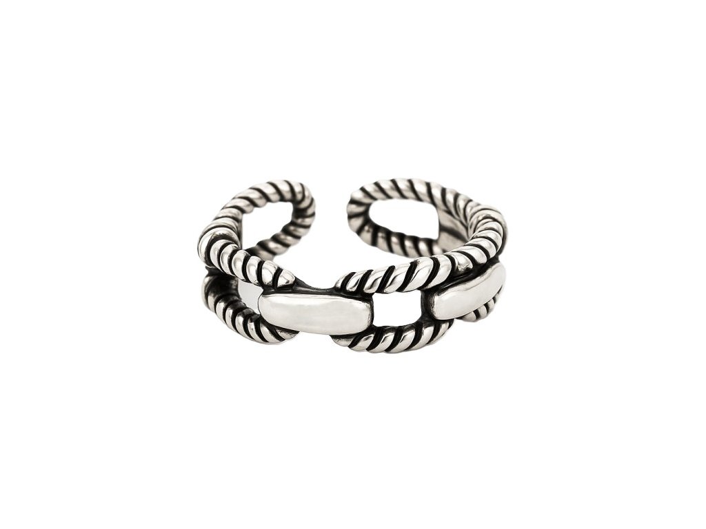 Pánsky nastaviteľný prsteň s motívom prepletených článkov, navrhnutý ako výrazný doplnok na každodenné nosenie aj voľnočasový štýl.