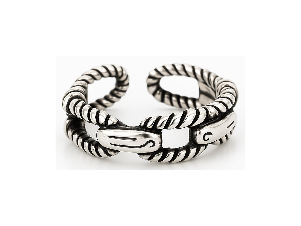 Masívny pánsky prsteň Bound Links – Spútané články symbolizuje silu spojenia a odolnosť. Prepletený dizajn pripomína oceľový reťazový vzor, ktorý spája štýl, silu a mužnosť v jednom doplnku.