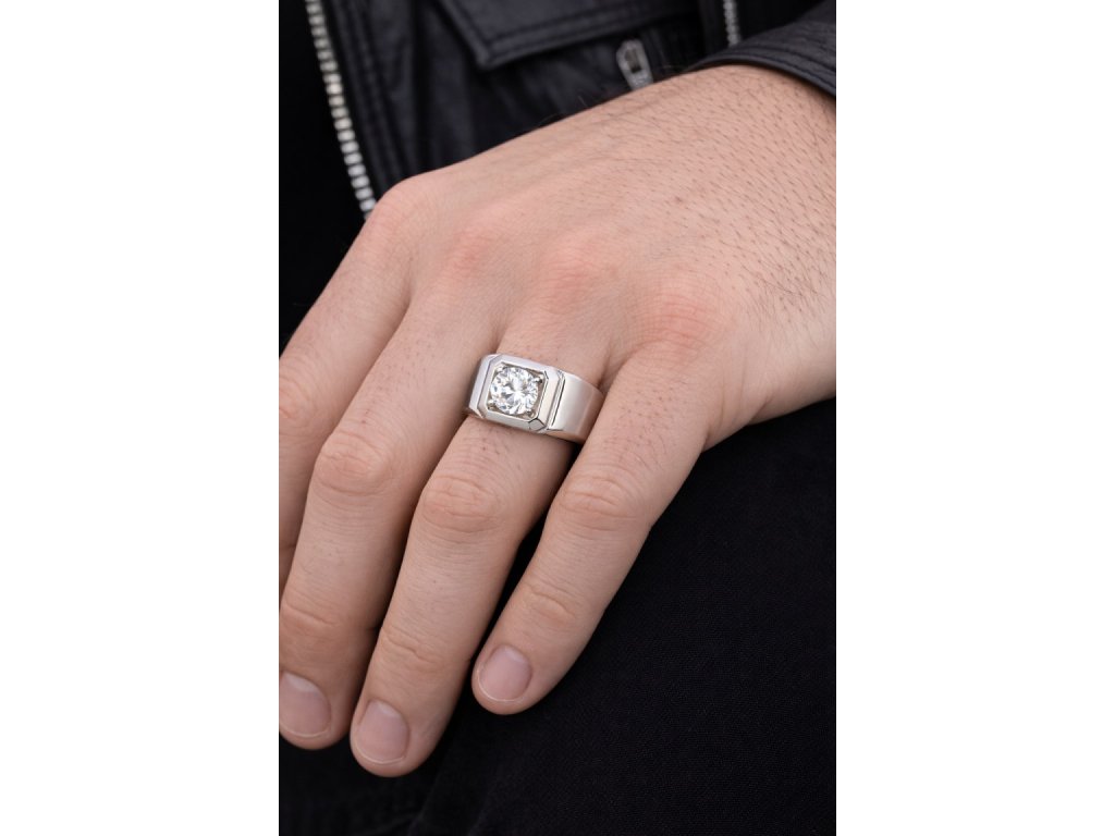 Masívny pánsky prsteň so žiarivým čírym kameňom v hranatom ráme. Symbol autority, sebavedomia a vnútornej sily. Elegantný doplnok pre moderného muža.