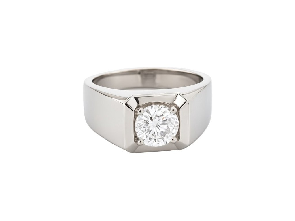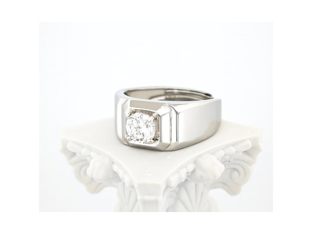 Pánsky prsteň s centrálnym zirkónom a hranatým dizajnom, navrhnutý ako výrazný doplnok na každodenné nosenie aj formálnejší štýl.