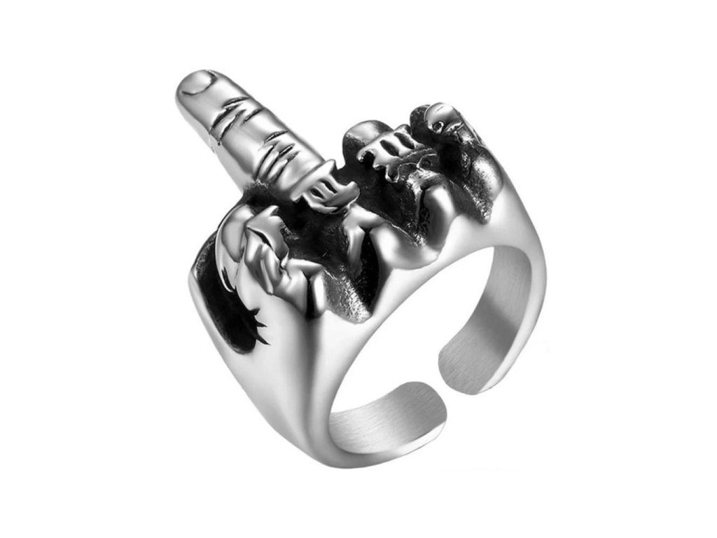 Pánsky prsteň v striebornej farbe s ikonickým rebelským gestom. Symbol odvahy, slobody a nespútaného postoja pre mužov, ktorí sa neboja byť sami sebou.