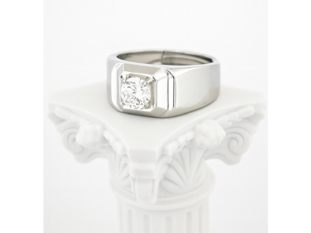 Masívny pánsky prsteň so žiarivým čírym kameňom v hranatom ráme. Symbol autority, sebavedomia a vnútornej sily. Elegantný doplnok pre moderného muža.