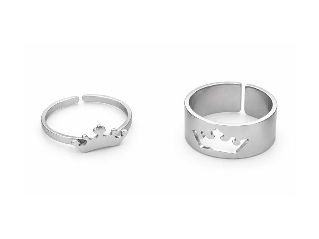 Set Royal Bond pozostáva z dvoch prsteňov vyrobených z chirurgickej ocele. Jeden prsteň je užší a doplnený tvarovaným motívom koruny, druhý má širší profil s výrezom rovnakého symbolu. Po spojení vytvárajú vizuálne prepojený dizajn.
