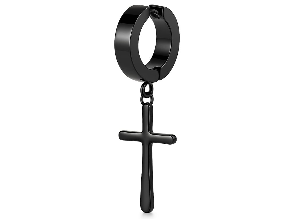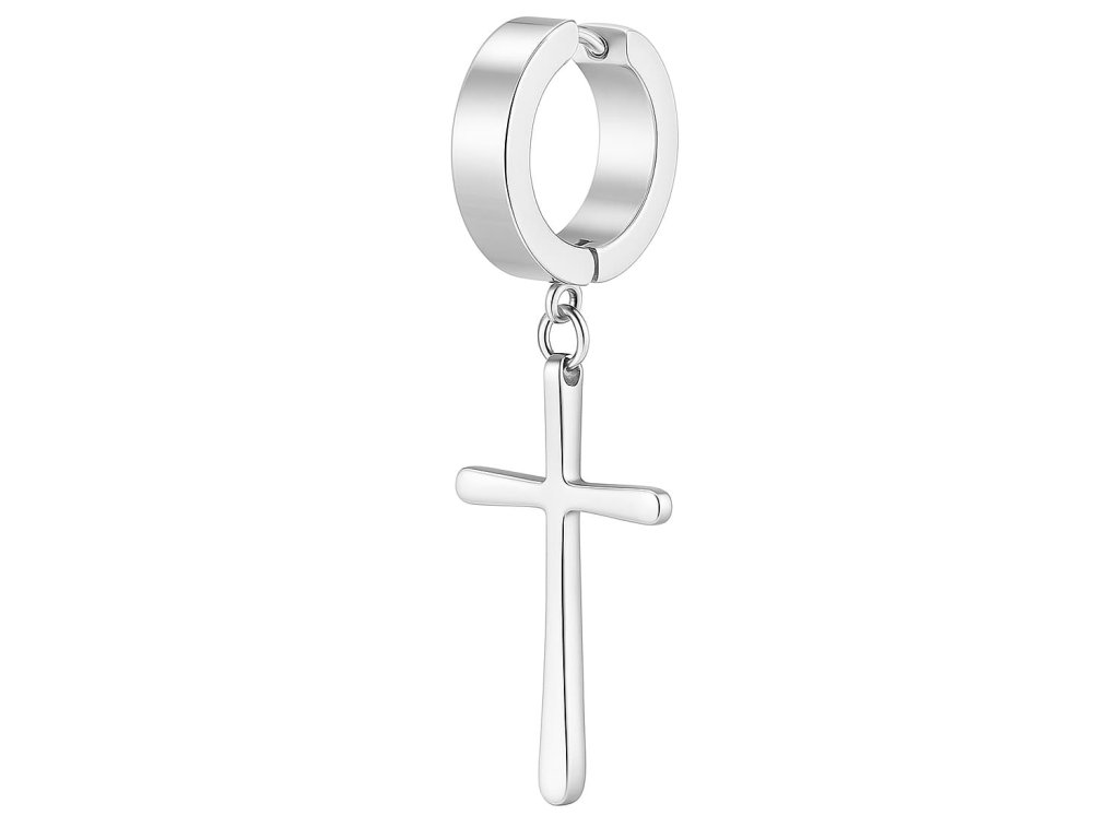 Moderná náušnica s visiacim krížikom v minimalistickom štýle. Symbol viery, rovnováhy a vnútornej sily pre mužov aj ženy, dostupná v čiernej a striebornej variante.