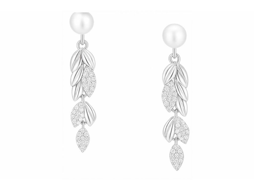 Dámske náušnice zo striebra 925 s perlou a zirkónmi v predĺženom dizajne.
