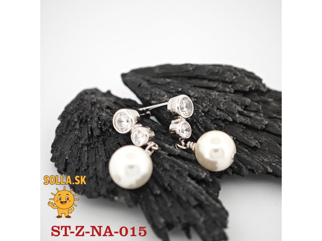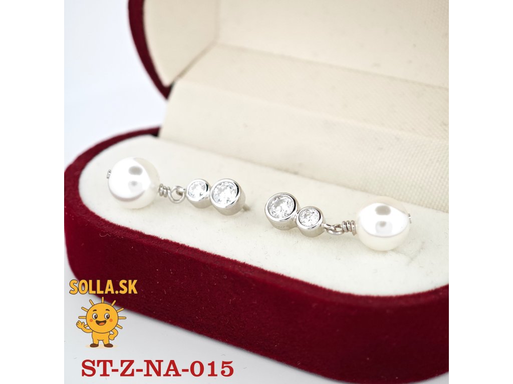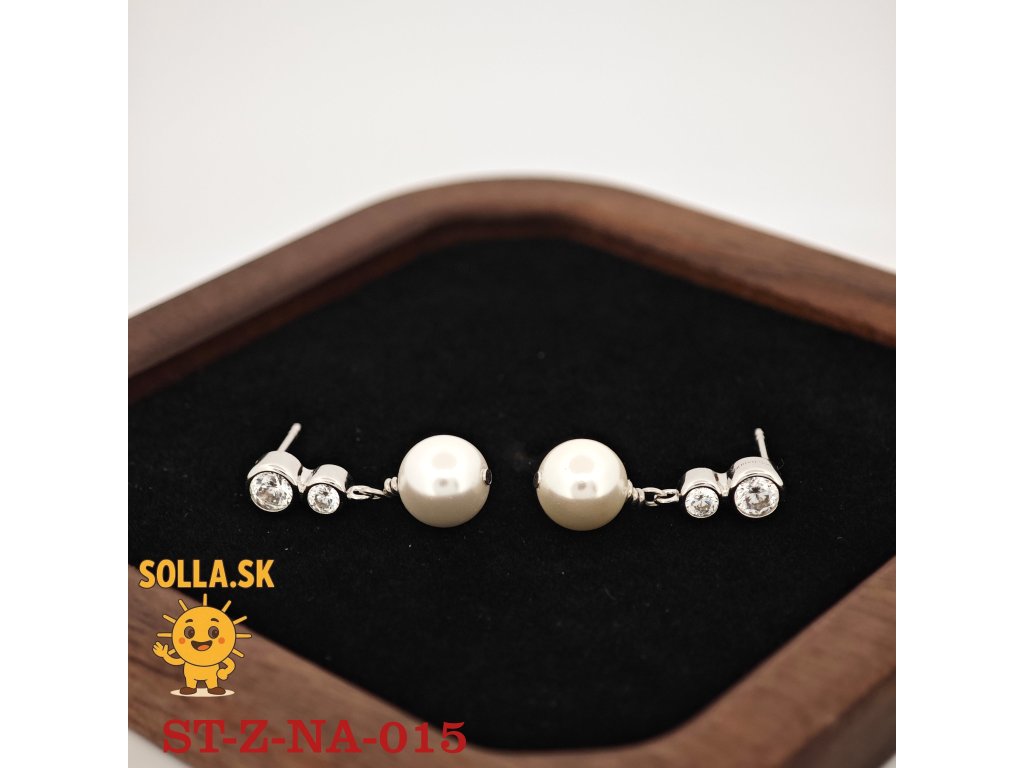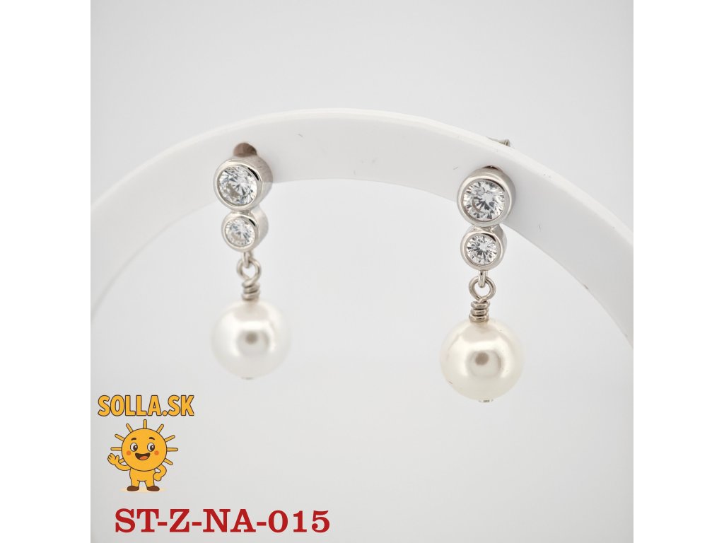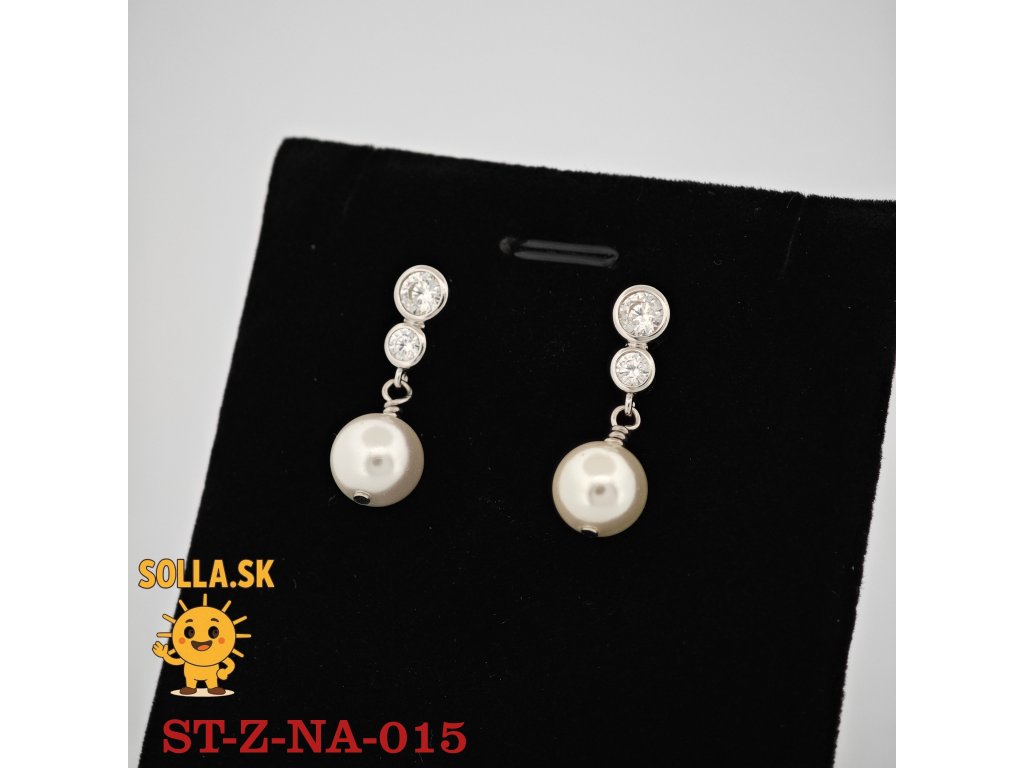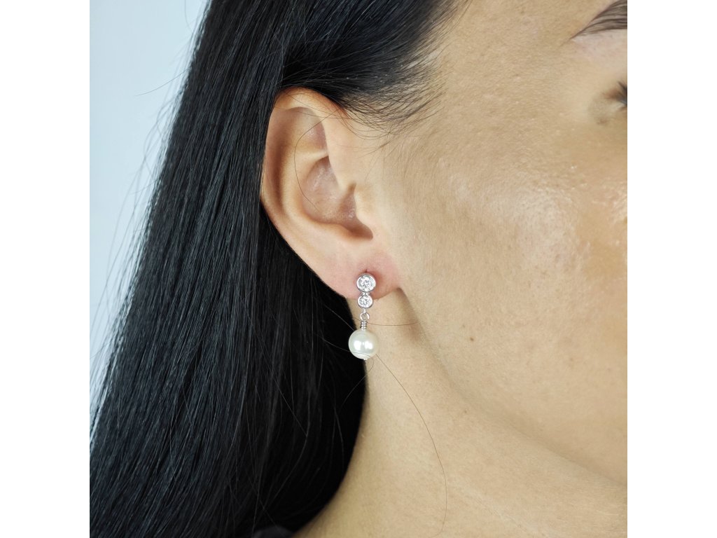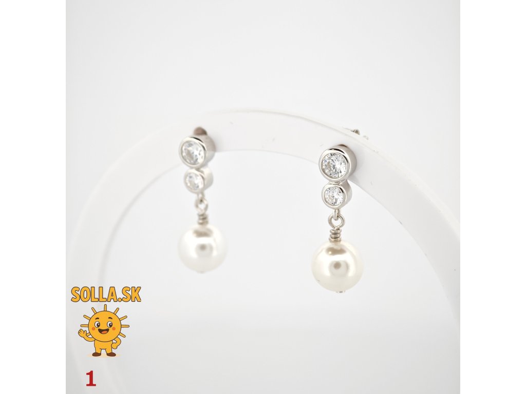 Kameň: dva číre zirkóny a centrálna biela perla – symbol čistoty a elegancie