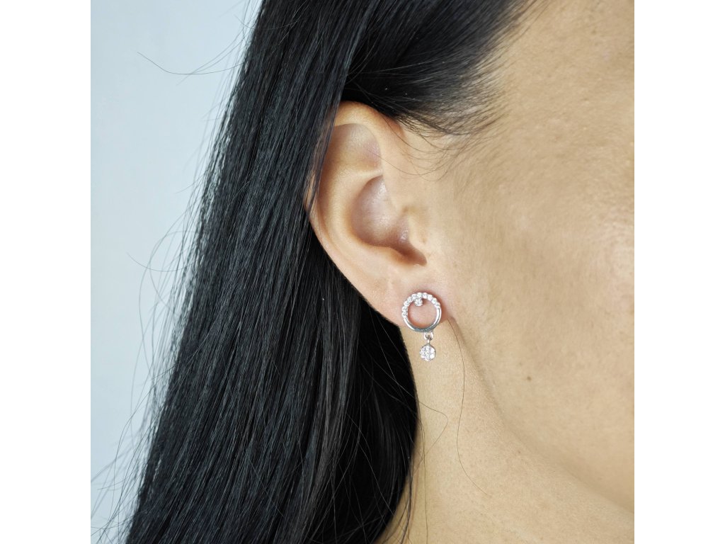 Každú náušnicu zdobí švajčiarsky zirkón najvyššej kvality, ktorého precízny brus vytvára brilantný lesk porovnateľný s pravým diamantom. Tento detail dodáva šperku výnimočnú žiaru a sofistikovaný charakter. Zavesený prvok v strede kruhu vnáša do dizajnu jemnú dynamiku a ženský pôvab.