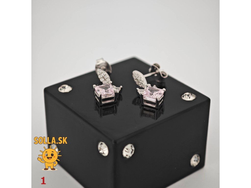 Kameň: ružový zirkón v tvare štvorca + drobné číre zirkóny
