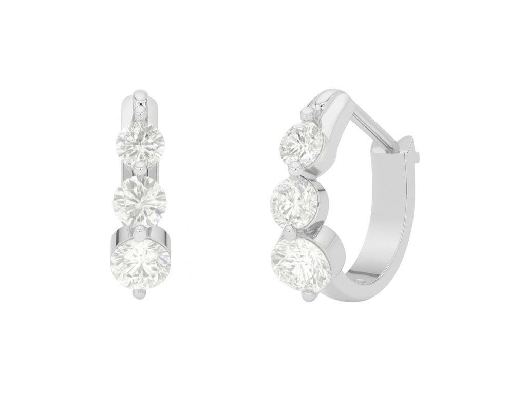 Dominantou náušníc je trojica čírych brúsených zirkónov osadených vedľa seba. Kamene sú zasadené do hladkého lôžka a vytvárajú čistý a vyvážený vzhľad. Vďaka kompaktnému dizajnu sú vhodné na každodenné nosenie aj rôzne príležitosti.