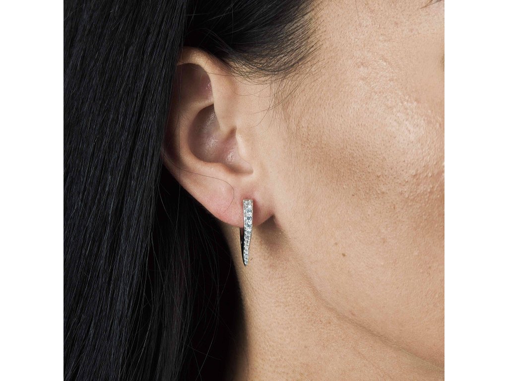 Strieborné náušnice Velora Curve zo striebra 925 s rhódiovou úpravou a žiarivými zirkónmi. Elegantný tvar kopírujúci líniu ucha dodáva jemný, no nezabudnuteľný šarm.
