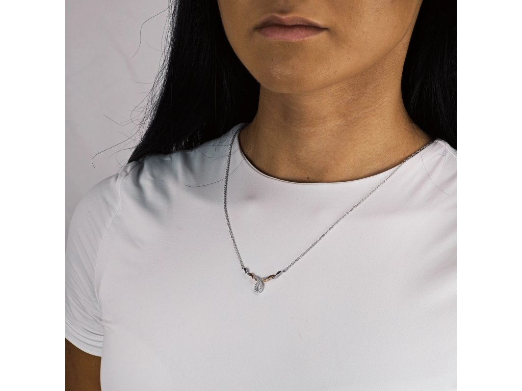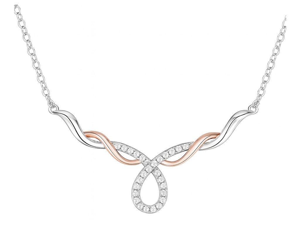 Rosé Elara je náhrdelník z rýdzeho striebra 925 s rhódiovou úpravou, kde sa vlnivé línie v striebre a ružovom tóne splietajú do nežnej symetrie.