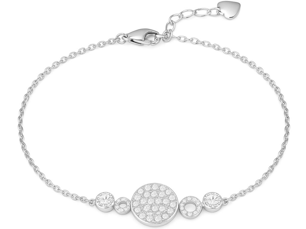 Jeho ústredný prvok, posiaty žiarivými zirkónmi, pripomína hviezdu v srdci galaxie – obklopenú kruhovými obežnicami a zábleskami svetla.