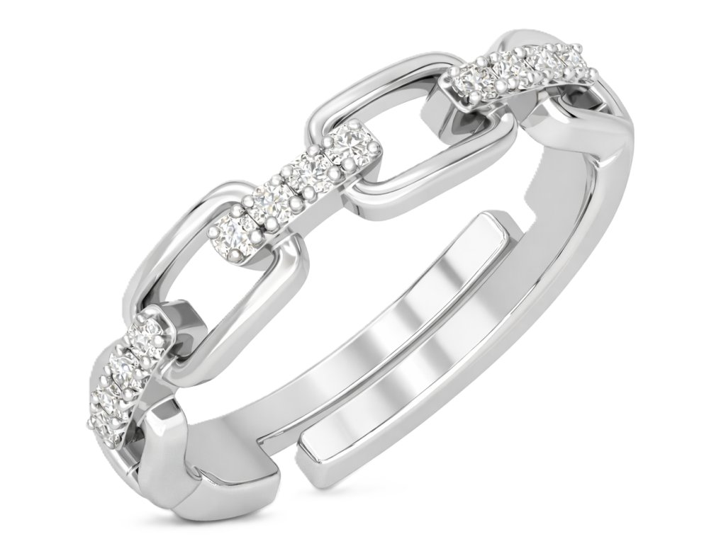 Dámsky nastaviteľný prsteň zo striebra 925 s retiazkovým vzorom a čírymi zirkónmi, navrhnutý ako elegantný doplnok na každodenné nosenie aj formálnejšie príležitosti.