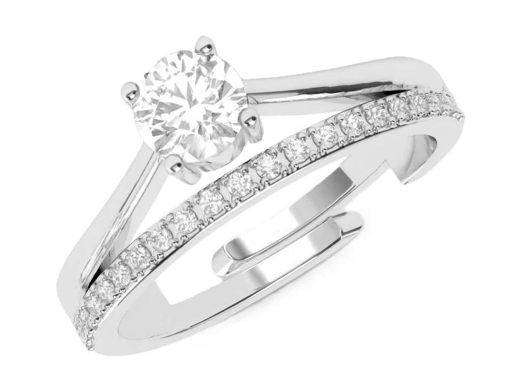 Dominantou prsteňa je veľký brilantne brúsený švajčiarsky zirkón, ktorý sa svojou čistotou a leskom vyrovná pravému diamantu. Dopĺňa ho jemná línia drobných kameňov, ktoré vytvárajú harmonickú hru svetla a podčiarkujú sofistikovaný charakter prsteňa. Každý detail bol spracovaný s dôrazom na dokonalý odraz žiary a eleganciu tvaru.