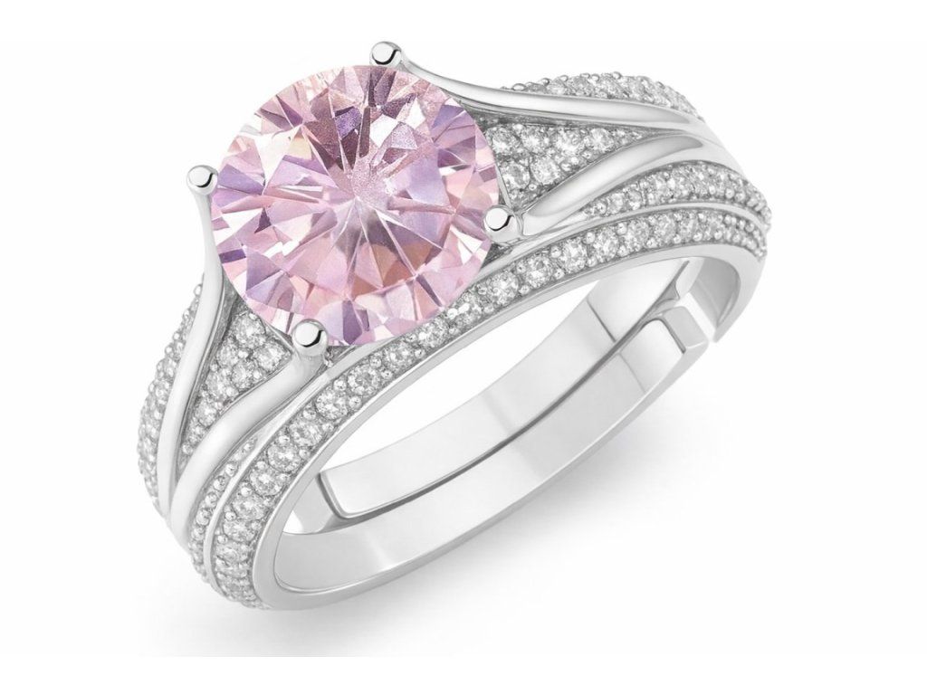 Dámsky prsteň zo striebra 925 s ružovou zirkóniou a doplnkovými kamienkami.