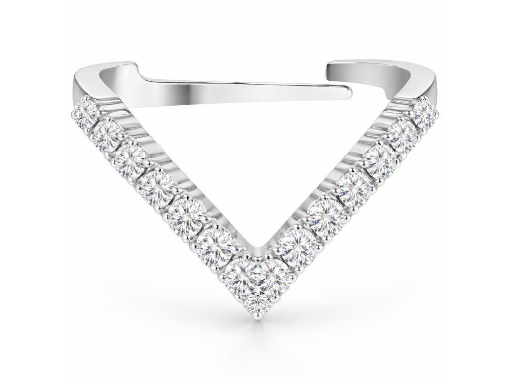 Hornú časť tvorí línia čírych brúsených zirkónov usporiadaných do jemne vlnitého tvaru. Kamene sú osadené pozdĺž otvorenej konštrukcie, čo vytvára ľahký a moderný vzhľad. Otvorený tvar zároveň umožňuje mierne prispôsobenie veľkosti pre pohodlné nosenie.