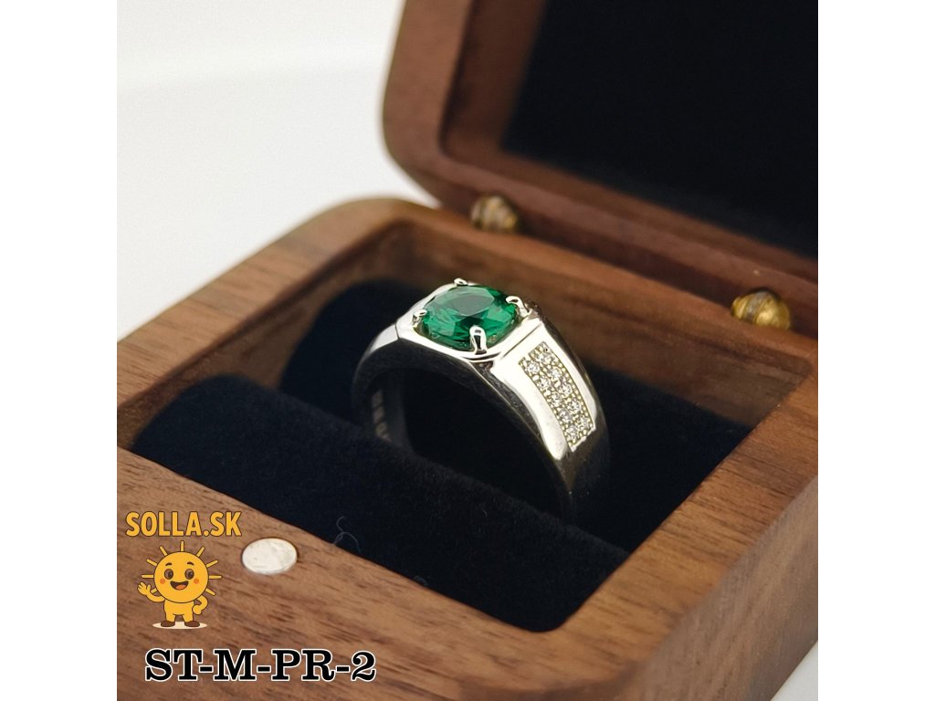 Zelený kameň v srdci prsteňa pripomína silu prírody, múdrosť a vnútorný pokoj. Je to ako pohľad do lesa, ktorý nič nepýta, ale všetko dáva.