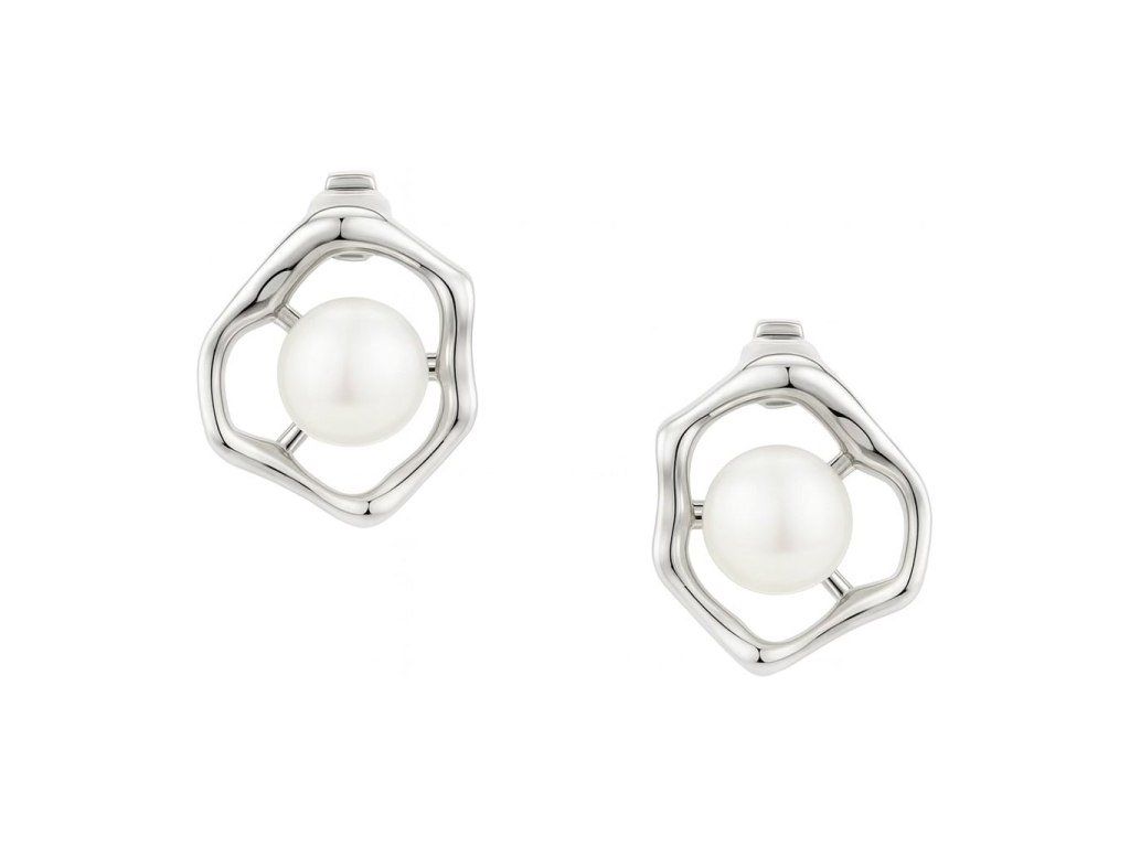 Dominantou náušníc je hladká biela perla doplnená o jemne tvarované línie kovu. Tvar inšpirovaný plynulými krivkami vytvára čistý a vyvážený vzhľad vhodný na každodenné nosenie aj rôzne príležitosti.