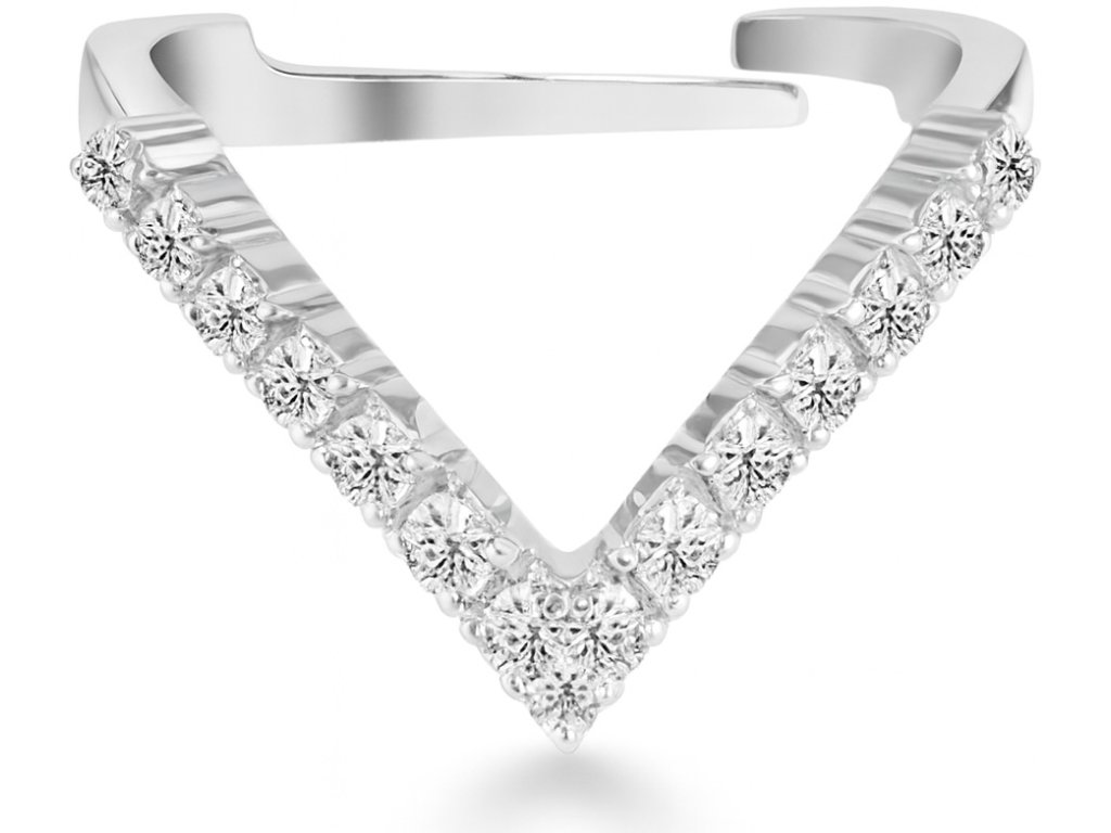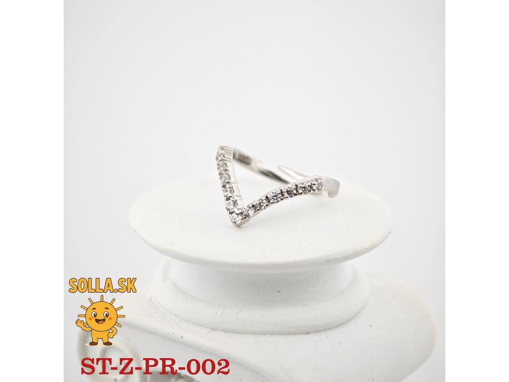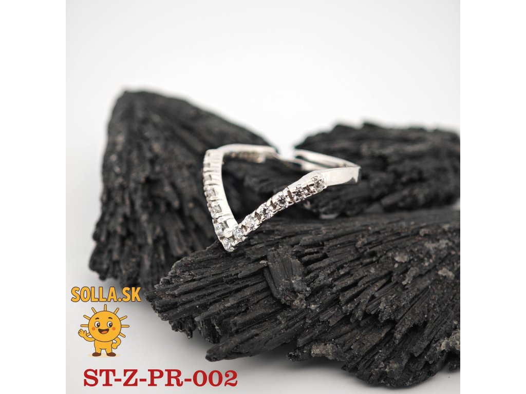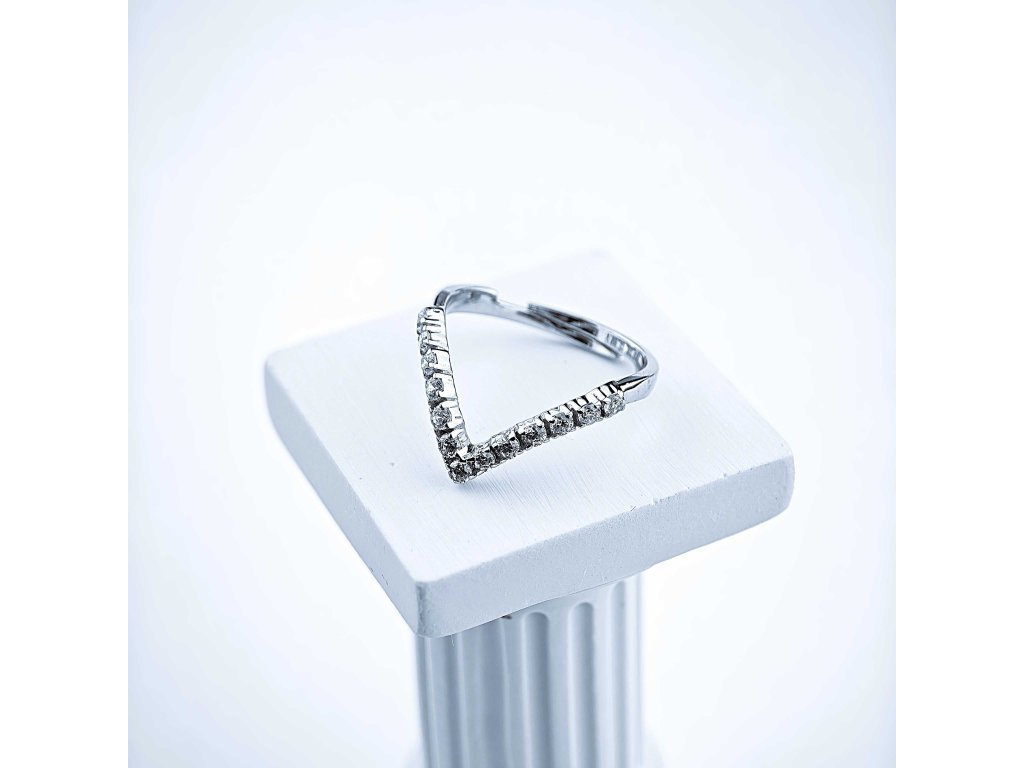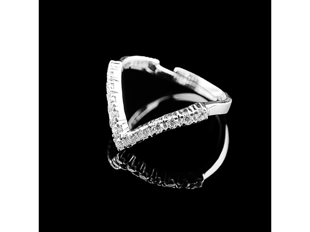 Vizuálne pôsobí prsteň ľahko a žiarivo – moderná kompozícia kameňov v tvare víťaznej vlny symbolizuje silu, ženskosť a sebavedomie.